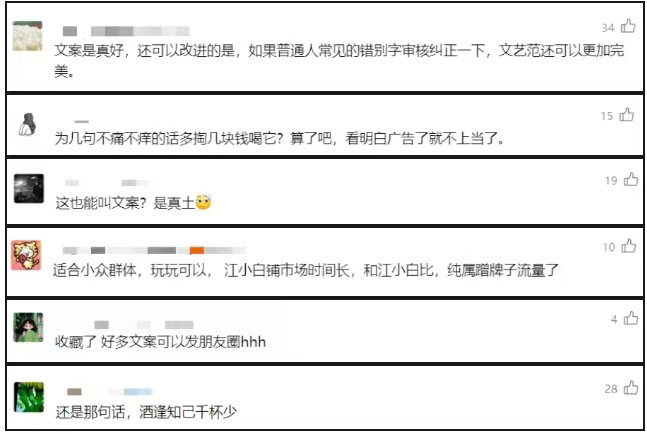 網(wǎng)友們對(duì)這些文案,