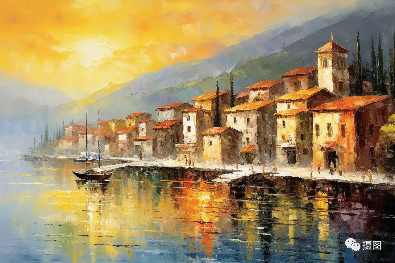 在這張日出的風(fēng)景畫中